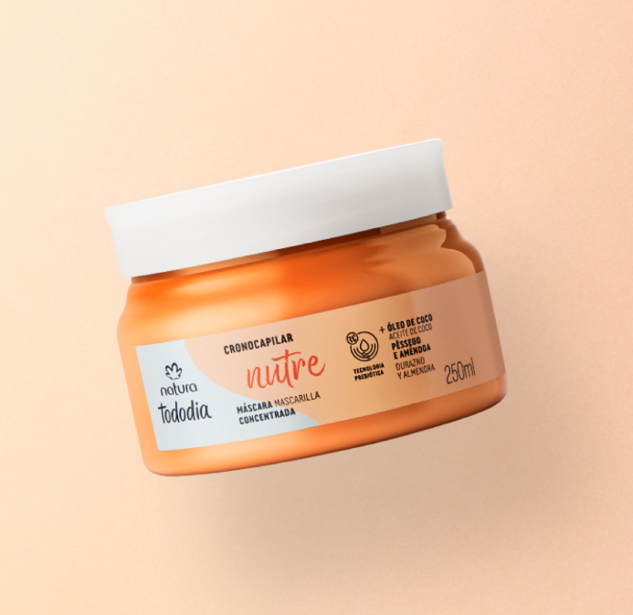 A Máscara Concentrada Crono Capilar TodoDia Nutre oferece cuidado intenso, revitalizando e nutrindo os cabelos profundamente. perfeita para recuperar cabelos ressecados e com frizz, sua fórmula rica em óleo de coco e óleo de amêndoa repõe os nutrientes essenciais dos fios, deixando-os com brilho, maciez e sem frizz. com uma fragrância alegre e cremosa, que traz notas encantadoras de personalidade e baunilha, ela transforma o cuidado capilar em um momento de prazer e bem-estar.